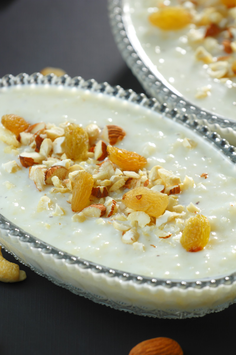 - Serve in individual dessert glasses or bowls. Garnish with more nuts and sultanas. Serve warm or chilled.